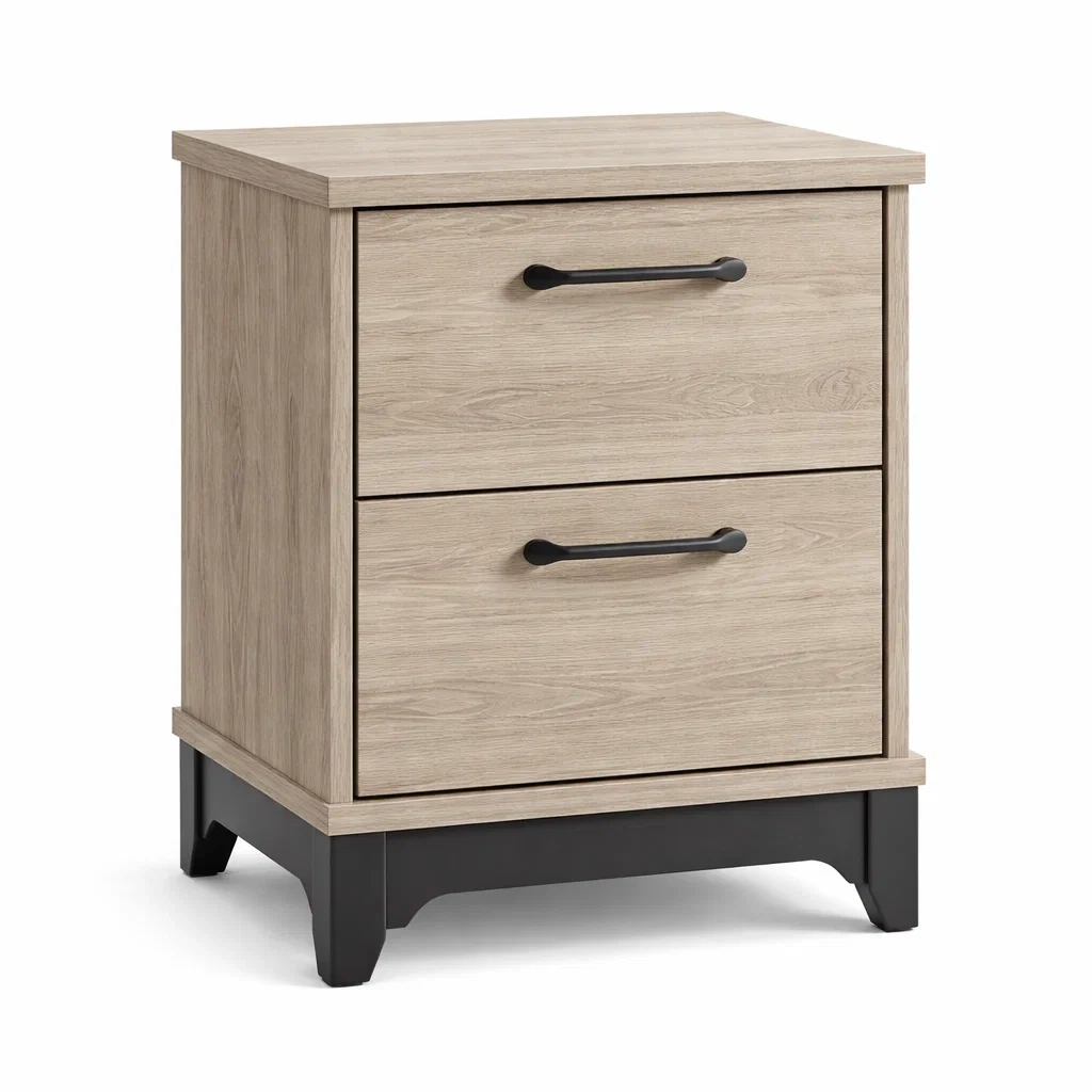 Nachttisch aus Holz und Metall Hellbraun mit zwei Schubladen