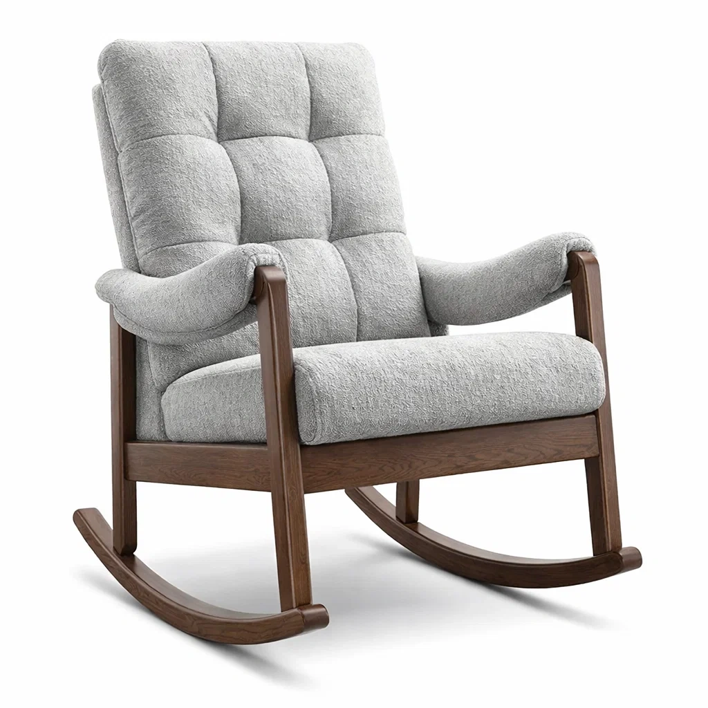 Schaukelstuhl aus Holz mit Polyesterpolsterung Grau